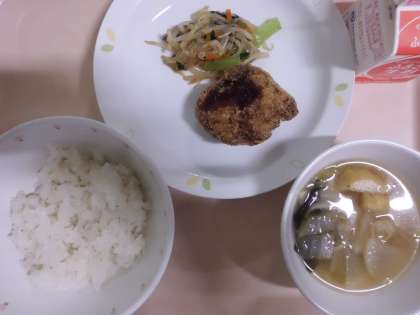 麦ごはん・牛乳・いかのメンチカツ・きのこ入りお浸し・白菜のみそ汁