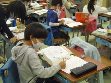 辞書を手元に置いて、国語の教材文に出てくる言葉の意味調べが始まりました。