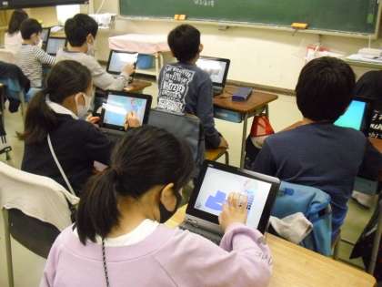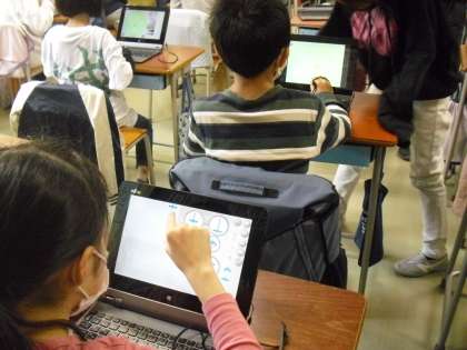 子供たちはどんどん吸収して、自分の思い通りに画面が動くよう操作し、活動を広げていました。