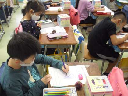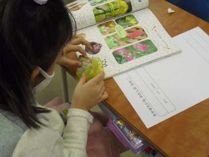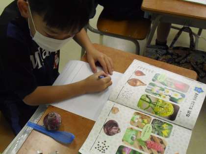 1年生がヒヤシンスの水さいばいに挑戦します。