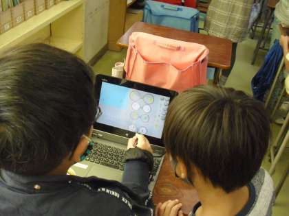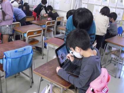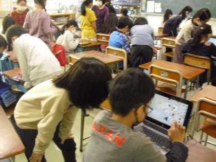 プログラミングの仕方を学習した4年生が、ミニ先生となって、3年生に教えていました。