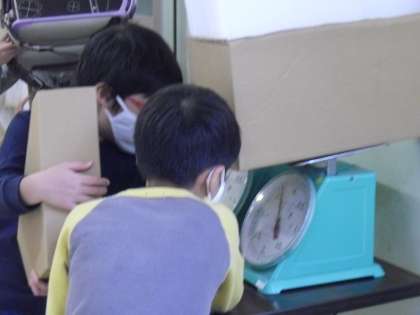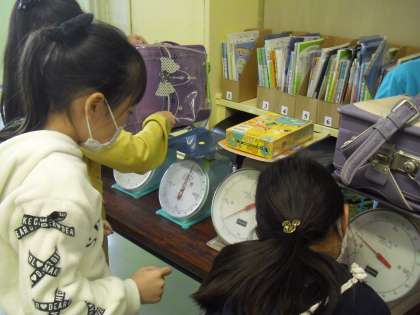 量感を育てるために、身の回りのものの重さを測定し確認です。