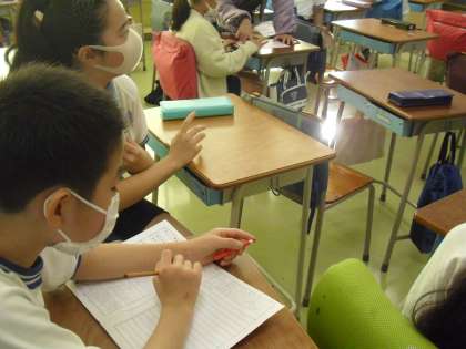 本を紹介しあい、どの本が読みたくなったのかを決める学習に向け、紹介原稿を作成して、紹介の練習をしていました。