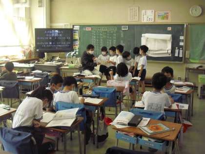 2年生はかけ算の問題に挑戦したり、九九検定にチャレンジしたり・・・