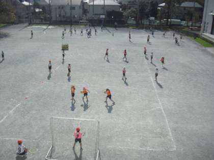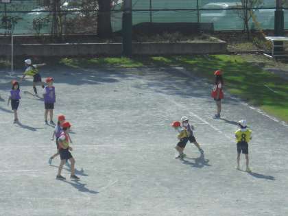 校庭でボールゲームの学習が始まりました〜
