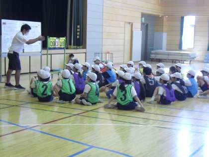 ボールをもっていないときに、どのような動きをするとよいのかについて学習し、ゲームに生かしていました〜