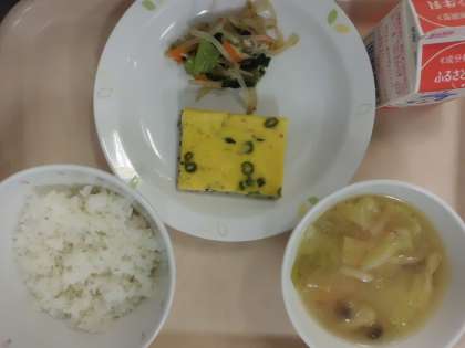 麦ごはん・牛乳・ひじき入り卵焼き・えのき入りお浸し・