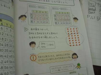 3の段と5の段をたすと8の段になる訳を説明し、理解を深めていました〜