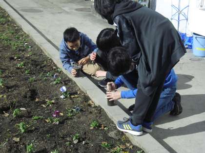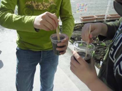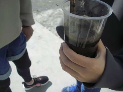 6年生は砂や土の粒の大きさを混ぜ、どのように堆積していくのか、理科の実験開始です〜