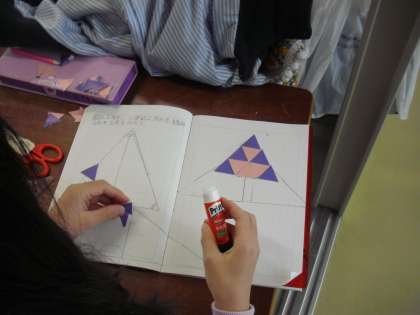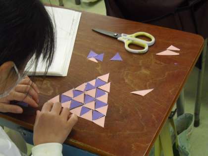 その中にもまた他の図形が隠れていることを発見するなど、図形のもつ美しさに関心をもったり、図形についての見方や感覚を豊かにしていきます・・・・・