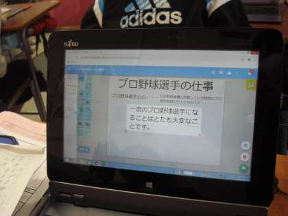 ICT機器を使っての調べ学習から、自分の調べたことについてまとめる活動をしていました。