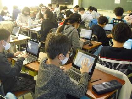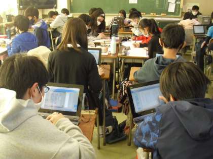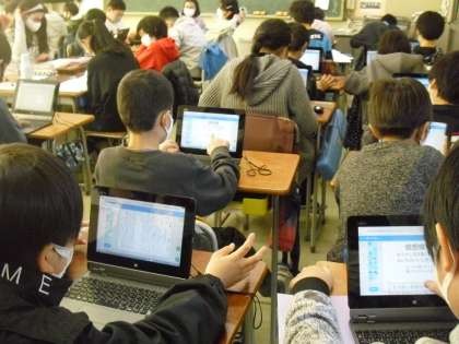 コロナ禍では対話が難しい面がありますが、ICT機器を活用して、形を変えた関わり合い活動、学び合い・高め合い活動を実現し、学習が静かに進んでいましたね・・・・
