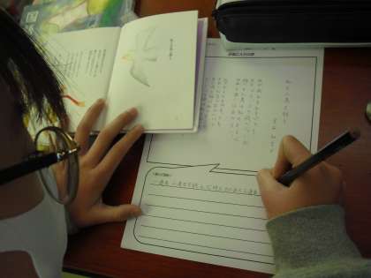 自分が「いいな〜、」思う詩を選んで視写し、感想を書く活動に取り組んでいました。