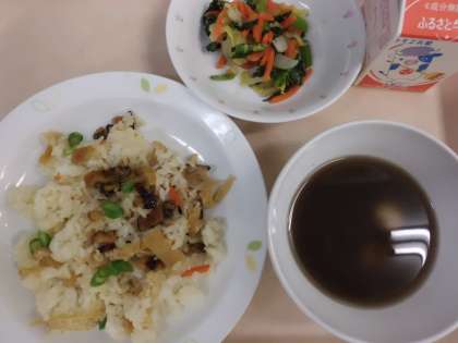ちらしずし・牛乳・野菜のおかかかけ・白玉しるこ