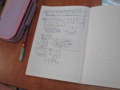 かけられる数が小数の場合のかけ算の仕方を考えました。3つのコースに分かれて学習をしています。
