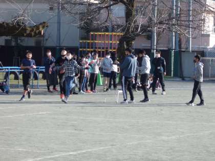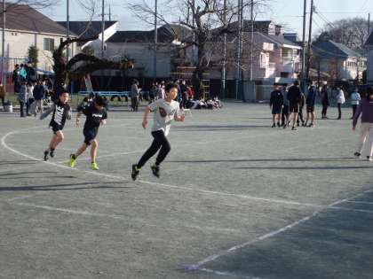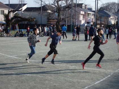 先頭の順番を交代しながらチームで校庭を6週しました〜