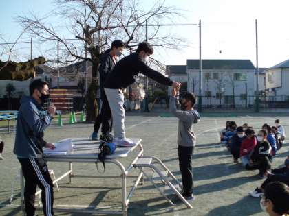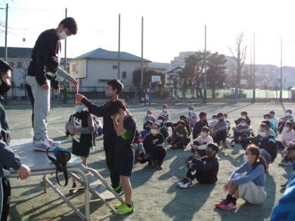 表彰式をして、みんなで終わりの言葉を聞き、今日のチトリンピックを終えました。