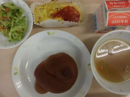 ココアパン・牛乳・ポテトオムレツ・ブロッコリーのサラダ・