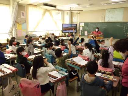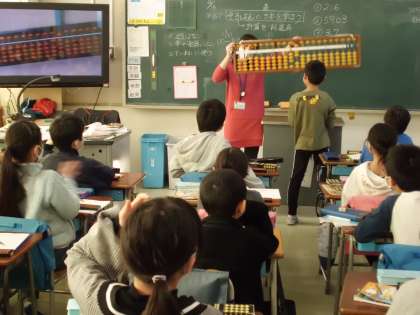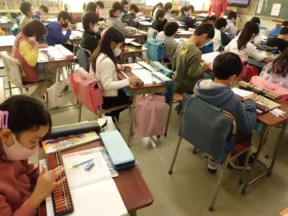昔から使われている計算の道具、そろばんを使っての学習です。