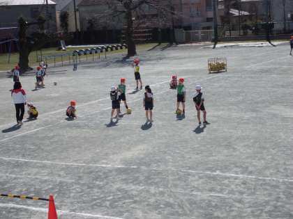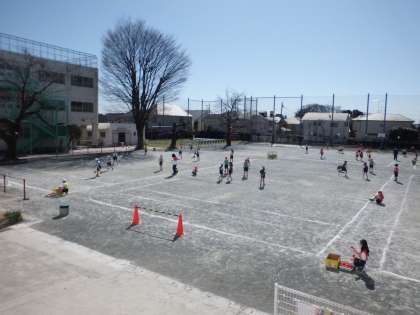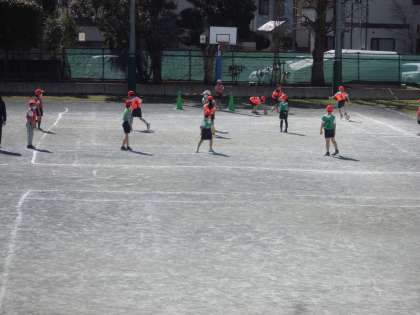 攻め、守り、ボールを蹴る簡単な動きを、活動を通して学んでいます・・・