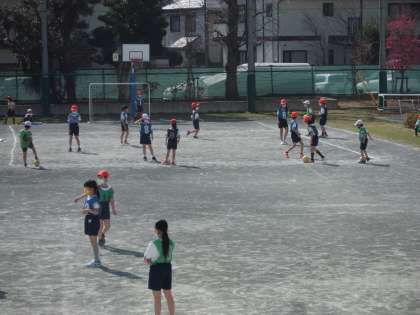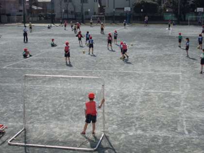 攻め、守りの動き、ボールを運ぶ動きをゲームを通して学習しています・・・・
