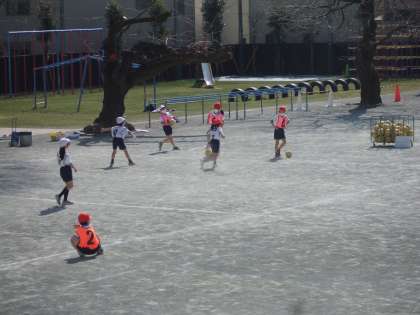 校庭では2年生のボールゲームの学習です。