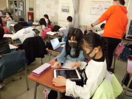 配られたタブレットを使って調べ学習開始〜