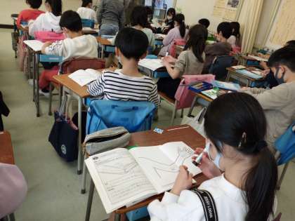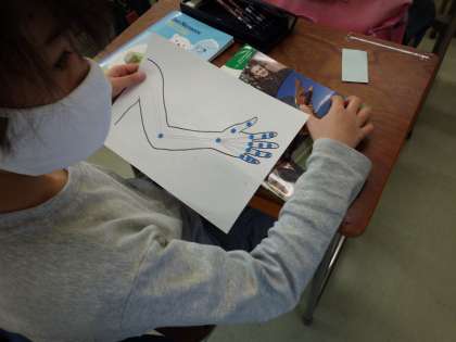 自分の体を動かし確認しながら、骨と筋肉のはたらきについて学習しています。