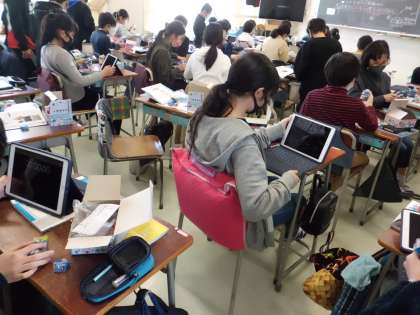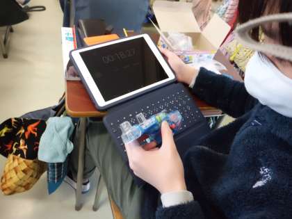タブレットの時間表示機能を使って、発電時間を測定するなどし、実験が進んでいました〜