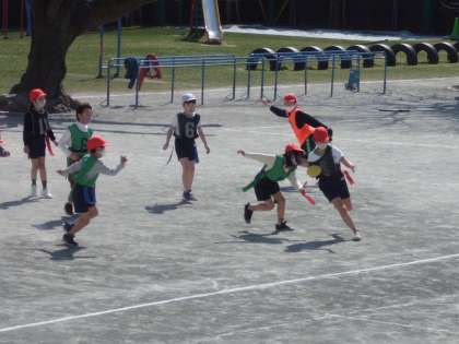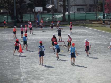 校庭でゴール型ゲームの学習が始まりました〜
