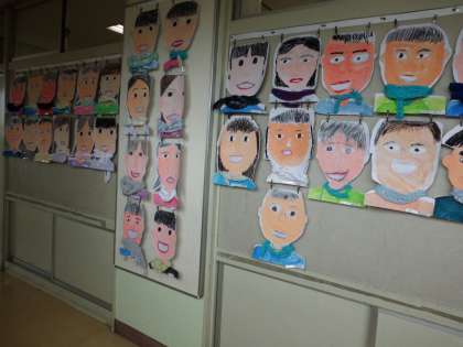 先日描いた自画像に、手編みの自作マフラーを飾り付けて・・・・