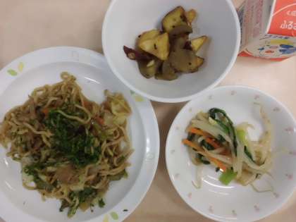 ソース焼きそば・牛乳・ナムル・りんご大学芋