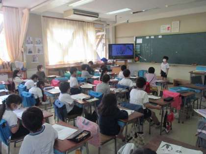 国語「どうぶつの赤ちゃん」の学習の様子です。自分が調べた動物の赤ちゃんの大きさや生まれたばかりの様子を一人ずつ発表しました。象の赤ちゃんやパンダの赤ちゃん・・・赤ちゃんも似ているところや違うところがあるんだなぁとみんな真剣に聞いていました。