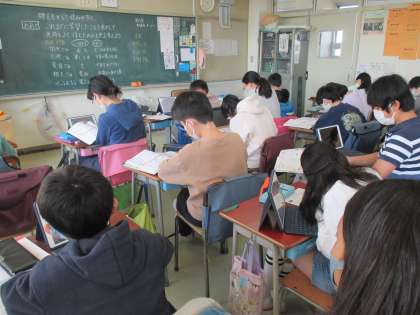 家庭科「ものを生かして住みやすく」では、ごみを減らす工夫や自分たちの地域のごみの出し方について調べ、気持ちよく生活できるためには、自分がどんな行動を心掛ける必要があるかを考えました。最後には、1年を通して環境について学習したことを生かして、ロイロノートで3Rポスターを作りました。
