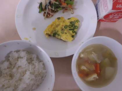 麦ごはん・牛乳・ひじき入り卵焼き・えのき入りお浸し・みそ汁
