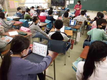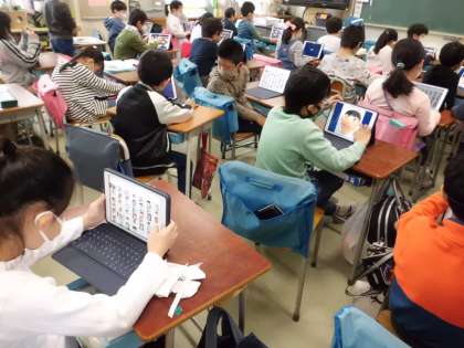 3年生は6年生の卒業に向けて、一人一人が6年生の似顔絵を描きました。