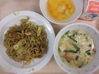 カレー焼きそば・牛乳・にらたまスープ・フルーツポンチ