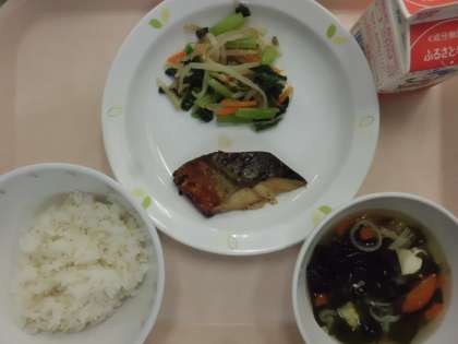 麦ごはん・牛乳・鯖の韓国焼き・ナムル・わかめスープ