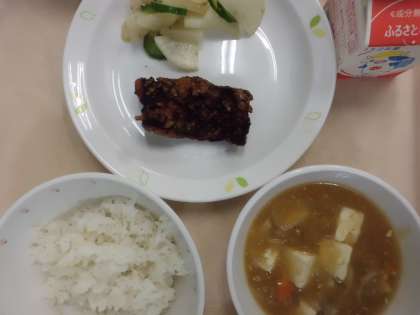 麦ごはん・牛乳・いかのかりんと揚げ・麻婆汁