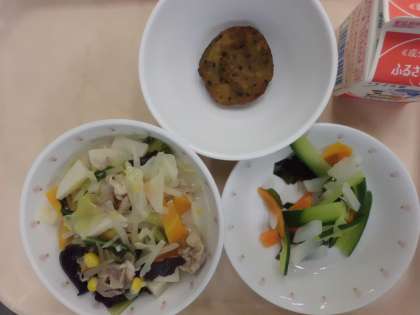長崎ちゃんぽん・牛乳・わかめの酢の物・つきあげ