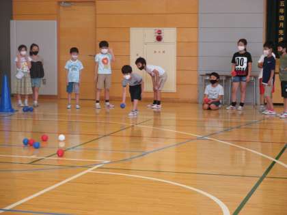 3年生が、ボッチャ体験をしました。自分の色の球をどれだけ白い球に近づけることができるかで、勝敗が決まります。白い球をはじいて自分のチームの球に近づけたり、そっと投げて白い球に寄せていったりとチームで作戦を練りながら対戦を楽しみました。