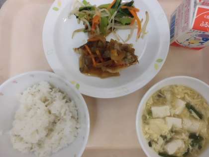 麦ごはん・牛乳・魚の甘酢あんかけ・お浸し・にらたま汁