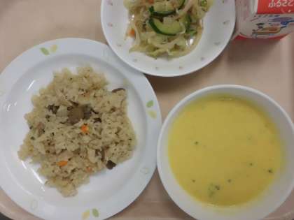 ガーリックピラフ・牛乳・キャロットポタージュ・じゃこサラダ
