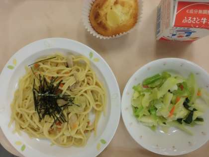 和風スパゲティ・牛乳・キャベツサラダ・りんごマフィン