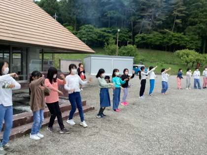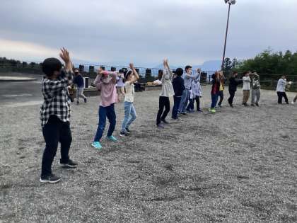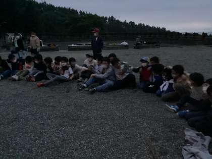 2、3組の1日目、キャンプファイヤーの様子です。みんなで盛り上がりました。