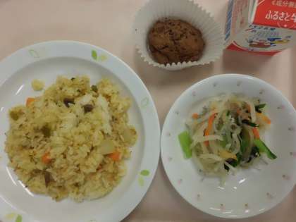 ツナピラフ・牛乳・じゃこのカリカリサラダ・おからマフィン