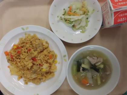 ジャンバラヤ・牛乳・コールスローサラダ・マカロニ入りスープ