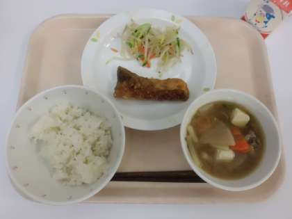 ごはん・牛乳・ぶりの竜田揚げ・白菜漬け・豚汁