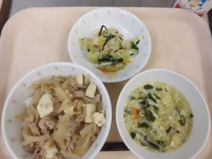 豚丼・牛乳・野菜の香味あえ・かきたま汁
