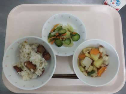 かつおめし・牛乳・じゃが芋の土佐煮・野菜のしょうが風味
